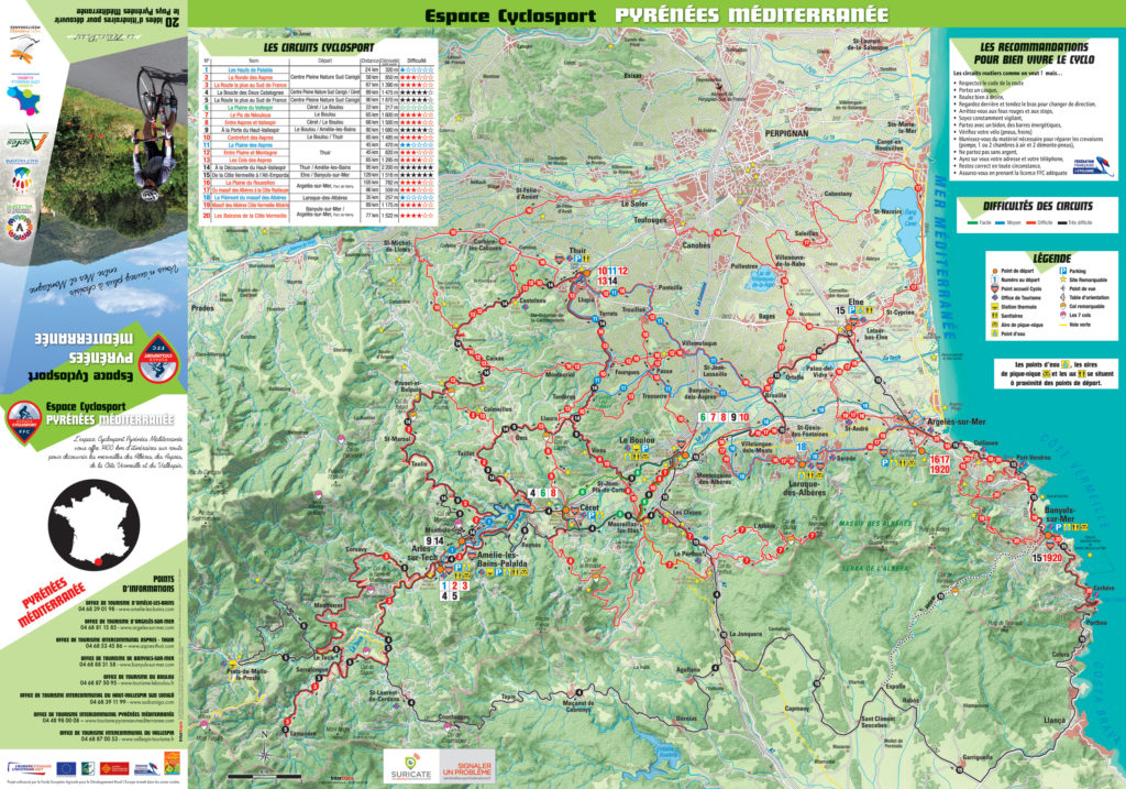 Nos parcours sont très variés tant sur longueur des côtes que sur les pourcentages proposés. Un de nos circuits vous conduira même à aller pédaler en Catalogne Sud. Vestiges du monde Romain, route du fer, patrimoine Roman, fort de Vauban, l’histoire de la Retirada et les Fêtes de l’Ours pourront enfin agrémenter « l’après vélo ».